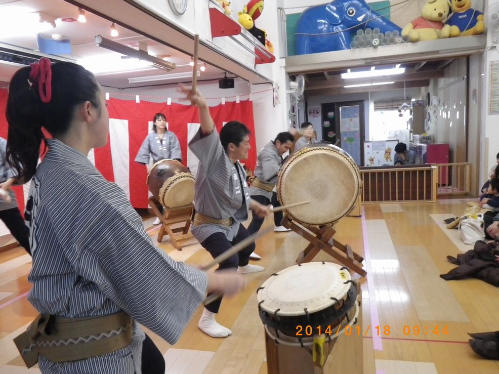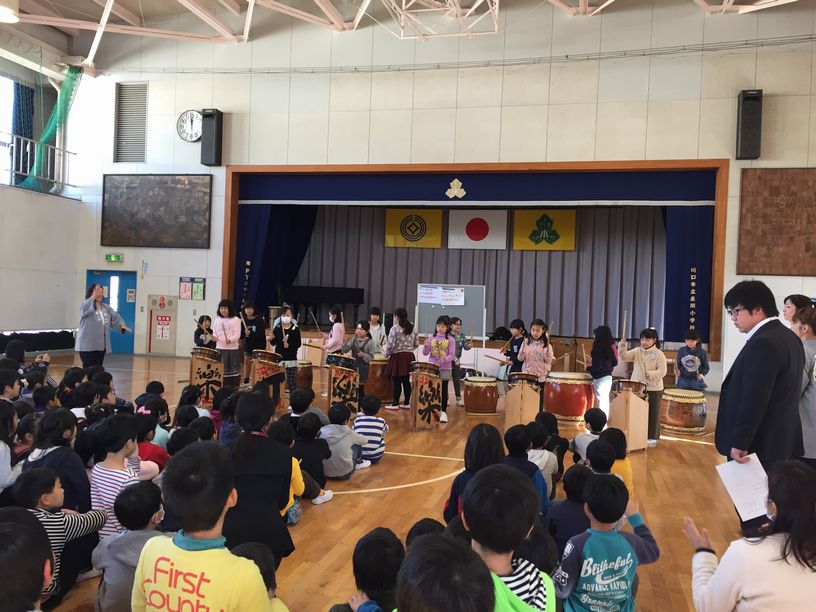 叩く楽しさを身体で感じさせております。またとある小学校では、太鼓