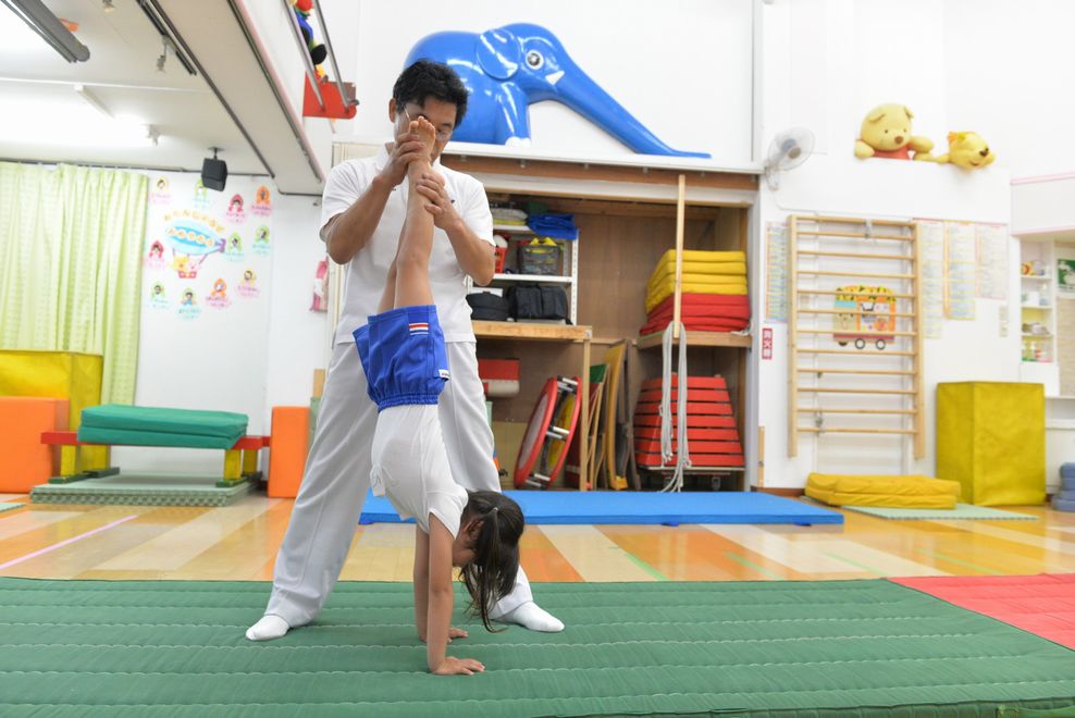 体の柔軟性、タンブリングやリズム体操など、マットや体操器具を